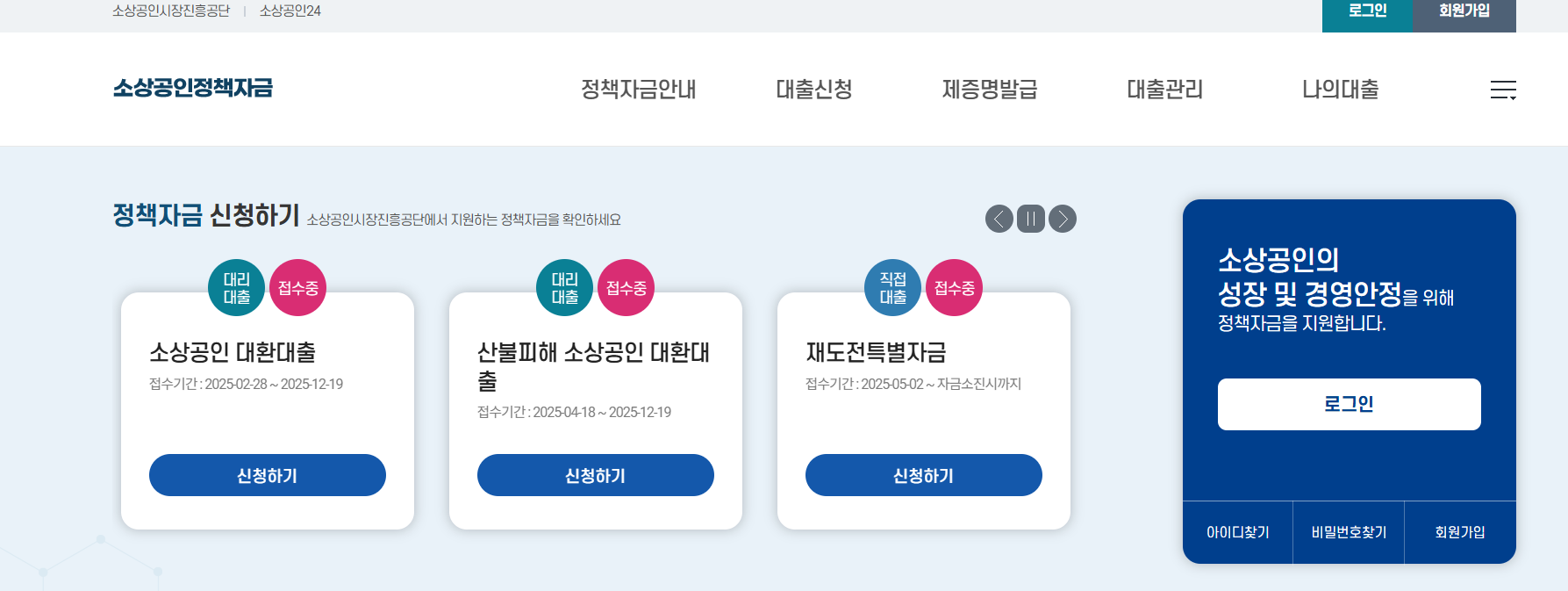 ※ 자세한 내용은 아래 소상공인정책자금 통합관리시스템을 확인하세요.